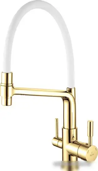 Смеситель Rose R658E предназначен для кухни и легко устанавливается на раковину или столешницу. Он выполнен из прочной латуни и доступен в белом и золотом цветах. Механизм однорычажный позволяет быстро регулировать температуру и поток воды одним движением. Излив поворотный и выдвижной, что удобно при мытье посуды или овощей. Встроенный кран для питьевой воды обеспечивает безопасность и комфорт. Высота смесителя составляет 445 мм, а длина излива – 228 мм, что дает хорошие возможности для использования.