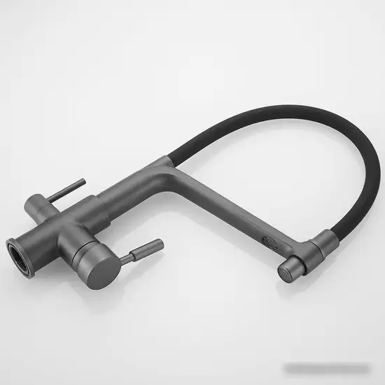 Смеситель Rose R658Y предназначен для кухни и устанавливается на раковину или столешницу. Он выполнен из прочной латунь и имеет современный серый цвет, который отлично вписывается в любой дизайн кухни. Этот смеситель оснащен механическим однорычажным управлением, что позволяет легко регулировать температуру и поток воды одной рукой. Устройство оборудовано керамическим картриджем диаметром 35 мм, обеспечивающим долгий срок службы и плавное изменение давления воды. Поворотный излив на 360° позволяет удобно мыть посуду и овощи, а выдвижной излив с аэратором обеспечивает комфорт и экономию воды.