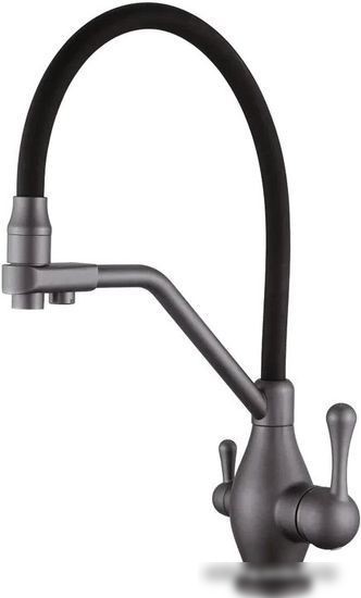 Смеситель Rose R858Y предназначен для кухни и устанавливается на раковину или столешницу через одно монтажное отверстие. Он выполнен из прочной латунной металлической конструкции и имеет приятный серый цвет. Смеситель оснащен однорычажной системой управления, что позволяет легко регулировать температуру и напор воды одной рукой. У него есть поворотный излив, который помогает удобно направлять воду, и выдвижной гибкий излив с аэратором, который облегчает мытьё посуды и продуктов. Благодаря этим функциям, пользоваться этим смесителем удобно и комфортно. Он подходит для тех, кто ценит практичность и простоту в использовании.