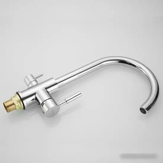 Смеситель Shevanik S168 предназначен для кухни и устанавливается на раковину или столешницу. Он выполнен из прочной латуни с хромированным покрытием, что делает его устойчивым к коррозии и придает приятный внешний вид. Основной механизм — однорычажный, что позволяет легко регулировать температуру и напор воды одним движением. Смеситель оснащен поворотным изливом, что удобно при использовании и позволяет направлять поток воды в нужное место. У него отсутствует выдвижной или гибкий излив, что делает конструкцию более простой и надежной. Такой смеситель отлично подойдет для тех, кто ценит качество и удобство использования. Он легко впишется в любой дизайн кухни за счет классического хромированного покрытия.