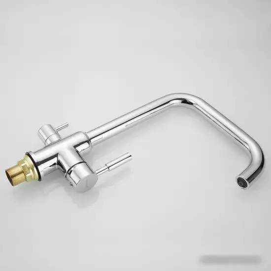 Смеситель Shevanik S268 предназначен для кухни и устанавливается на раковину или столешницу. Он выполнен из надежной латуни с красивым хромированным покрытием, которое хорошо защищает от коррозии и легко очищается. Механизм однорычажный позволяет удобно регулировать воду одной рукой. Поворотный излив дает возможность легче мыть посуду и продукты, а также достигает различных участков раковины. Этот смеситель прост в использовании и долговечен благодаря качественным материалам.