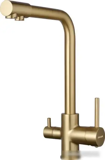Смеситель Shevanik S328G предназначен для кухни и устанавливается в раковину или столешницу. Он выполнен из высококачественной латуни и имеет привлекательный золотой цвет, что придает кухне стильный вид. Смеситель оснащён однорычажным механизмом и керамическим картриджем, что обеспечивает плавное управление и долгий срок службы. У него есть встроенный кран для питьевой воды и поворотный излив, что удобно при использовании. Использование этого смесителя позволяет легко регулировать температуру и расход воды. Он обладает компактными размерами и легко вписывается в любой кухонный интерьер.