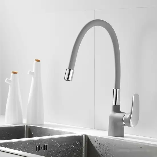 Смеситель Shevanik S443-9 предназначен для кухни и легко устанавливается на раковину или столешницу. Он выполнен из прочной латуни и имеет стильный серый цвет. Однорычажный механизм помогает удобно регулировать воду, а керамический картридж диаметром 35 мм обеспечивает долговечную работу. Особенностью является поворотный излив на 360°, что позволяет удобно мыть посуду и manoevroваться под краном. Смеситель также оснащён выдвижным гибким изливом с аэратором, который облегчает мытье и способствует экономии воды. Удобство и практичность делают его хорошим выбором для любой кухни.