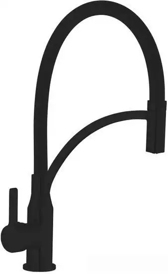Смеситель Shevanik S643H-3 предназначен для использования на кухне. Он устанавливается на раковину или столешницу и имеет один монтажное отверстие. Механизм однорычажный, что позволяет легко регулировать температуру и поток воды. Смеситель выполнен из прочной латунной ковки и имеет черный цвет, что хорошо сочетается с современным интерьером. В конструкции есть поворотный излив и выдвижной гибкий шланг с аэратором, обеспечивающий удобство в использовании. Этот смеситель помогает быстро и комфортно делать воду нужной температуры и объема.