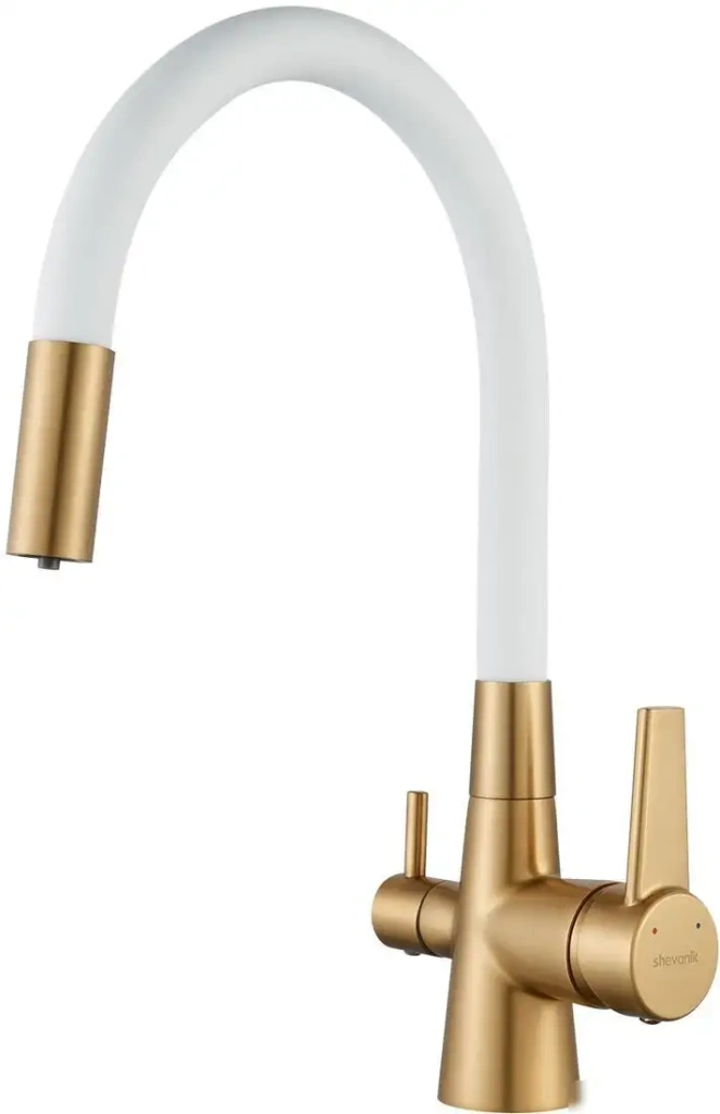 Смеситель Shevanik S668G предназначен для кухни и легко устанавливается на раковину или столешницу через одно монтажное отверстие. Он оснащён однорычажным механизмом, который обеспечивает быстрое и точное управление водой. Излив поворачивается и выдвигается, что повышает удобство при использовании. Вы можете выбрать белый, золотой или сатиновый цвет, чтобы гармонично вписать его в интерьер кухни. Высота смесителя составляет 335 мм, а длина — 280 мм, что делает его универсальным для различных раковин. Встроенный керамический картридж длиной 35 мм обеспечивает долговечность и надёжность. Конструкция из нержавеющей латуни проста в уходе и устойчиво к коррозии. Этот смеситель подходит для подключения к холодной и горячей воде, обеспечивая комфортный поток. Он сочетает в себе практичность и стильный дизайн, делая кухонную раковину максимально удобной в использовании.