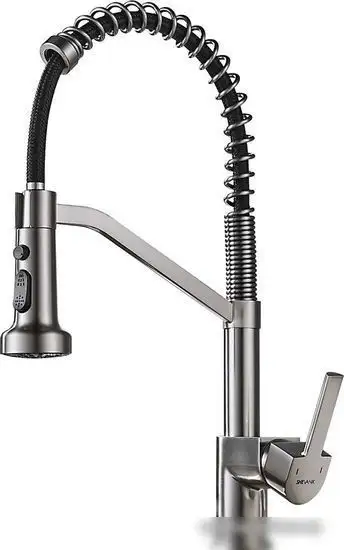 Смеситель Shevanik S963L предназначен для использования на кухне и легко устанавливается на раковину или столешницу, требуя одного монтажного отверстия. Он выполнен из прочной латуни и имеет сатиновый цвет, что делает его стильным и устойчивым к коррозии. Основной механизм — одноручный кран с керамическим картриджем диаметром 35 мм, обеспечивающий плавное и точное регулирование температуры и давления воды. Излив поворотный с длиной 210 мм и высотой 165 мм, что удобно для мытья посуды и продуктов. Встроенная возвратная пружина помогает сохранять оптимальные настройки. Этот смеситель подходит для подключения к безнапорным водонагревателям, что расширяет его функционал. Он прост в использовании, надежен и удобно сочетает в себе стиль и практичность.