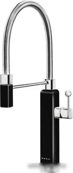Смеситель Smeg MDF50BL имеет стильный черный и хромовый дизайн, который отлично подчеркнёт вашу кухню. Он устанавливается на раковину или столешницу и легко монтируется с одним монтажным отверстием. Оснащён однорычажным механизмом, который быстро регулирует температуру и поток воды. Керамический картридж диаметром 25 мм обеспечивает долгий срок службы и плавное управление. Поворотный излив на 360° позволяет удобно регулировать направление воды. Встроенный выдвижной гибкий излив с душевой лейкой упрощает мытьё посуды и очистку раковины. Материал латунь делает смеситель прочным и устойчивым к коррозии. Габариты позволяют установить его в разные типы кухонных моек, а длина излива — до 230 мм. Этот смеситель сочетает современный дизайн с удобством и долговечностью, делая использование кухни приятным.