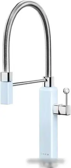 Смеситель Smeg MDF50PB обеспечивает удобство и стиль для вашей кухни. Он предназначен для установки на мойке и имеет однорычажный механизм для лёгкого регулирования температуры и давления воды. Благодаря поворотному изливу на 360°, вы легко направляете поток воды туда, где нужно. Выдвижной гибкий излив с душевой лейкой расширяет возможности использования, например, при мытье посуды или фруктов. Модель выполнена из прочной латуни со стильным голубым цветом и хромированной отделкой. Керамический картридж диаметром 25 мм обеспечивает долговечность и плавное управление. Дизайн выполнен в ретродизайне, что подчеркнет стиль вашей кухни. Размеры устройства позволяют легко установить и не занимают много места. Смеситель соединяет стиль и практичность, делая процесс мытья более комфортным.