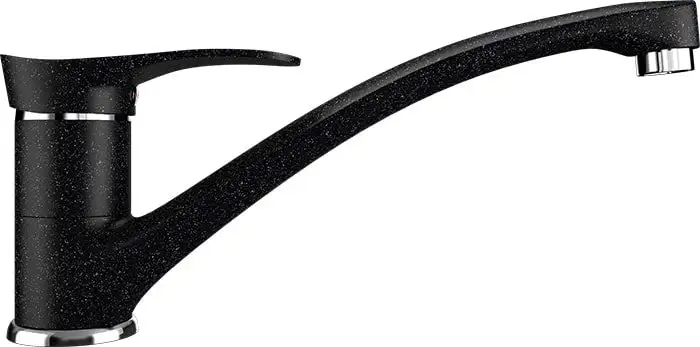 Этот смеситель Ulgran U-003 308 выполнен в черном цвете и изготовлен из прочной латуни. Он предназначен для установки на раковину или столешницу с одним монтажным отверстием. Благодаря однорычажной конструкции управлять потоком и температурой воды очень удобно. Керамический картридж 40 мм обеспечивает долговечность и плавное регулирование. Современный поворотный излив на 360° позволяет легко мыть посуду и обеспечивать комфортные условия использования. Высокий излив дает простор для мытья больших предметов и посуды. Устройство не имеет встроенного кранa для питьевой воды и функций выдвижного или каскадного излива. С компактными размерами — шириной 55 мм и высотой 120 мм — смеситель отлично впишется в любую кухню. Он просто монтируется и удобно в использовании, что делает его хорошим выбором для домашней кухни.