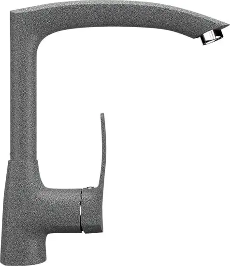 Смеситель Ulgran U-005 309 в темно-сером цвете отлично подойдет для вашей кухни. Он предназначен для установки на раковину или столешницу с одним монтажным отверстием. Механизм однорычажного управления позволяет легко регулировать поток воды и температуру. Встроенный керамический картридж диаметром 40 мм обеспечивает долговечность и плавное управление. Поворотный излив на 360° дает свободу движения и удобство при мытье посуды. Цвет и дизайн подходят под мойку из камня, создавая стильное сочетание. Высота смесителя — 250 мм, а длина излива — 190 мм, что делает его удобным в использовании. Он не имеет функции выдвижного излива или ограничителя расхода воды, но отлично справляется с основными задачами. Надежный материал — латунь, обеспечивает долгий срок службы устройства.