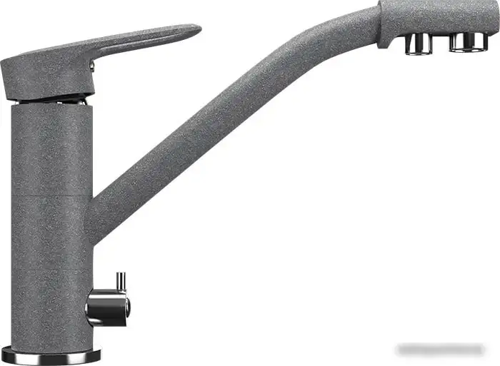 Смеситель Ulgran U-010 342 в графитовом цвете идеально подходит для установки на раковине или столешнице. Он выполнен из durable латуни и оснащён керамическим картриджем диаметром 40 мм, который обеспечивает долгий срок службы и лёгкое управление. Механизм однорычажного типа позволяет быстро регулировать температуру и поток воды одним движением. Поворотный излив длиной 240 мм удобно направляет поток воды точно в раковину. Встроенный кран для питьевой воды позволяет легко получить чистую воду. Смеситель легко монтируется через одно отверстие на поверхности мойки или столешницы. Он обладает простым дизайном, сочетающимся с разными стилями кухонных интерьеров. Среди полезных функций — возможность регулировки направления воды для удобства пользования.