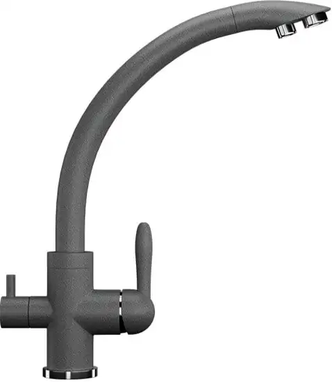 Смеситель Ulgran U-017 309 темно-серого цвета отлично подойдет для мойки на кухне. Он устанавливается в одну монтажную дырку на раковине или столешнице. Благодаря однорычажному механизму, управление водой становится простым и удобным. Латунный корпус обеспечивает долговечность и надежность, а современный дизайн под камень впишется в любую кухню. Встроенный кран для питьевой воды позволяет быстро получить чистую воду. Поворотный излив на 360° облегчает мытье посуды и продукты. Керамический картридж гарантирует длительную и плавную работу смесителя. Высота устройства — 332 мм, а длина излива — 237 мм, что обеспечивает комфорт использования.