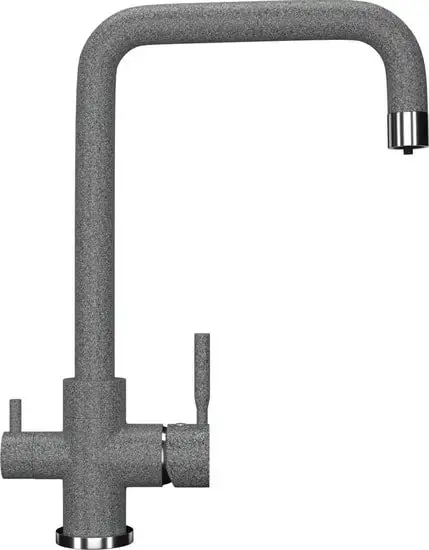 Смеситель Ulgran U-019 309 в темно-сером цвете подходит для установки на раковину или столешницу. Он оснащён однорычажным механизмом, который обеспечивает лёгкое регулирование температуры и напора воды. Конструкция из латунькастом, а керамический картридж гарантирует долгий срок службы и минимальное протекание. Поворотный излив с диапазоном 361° позволяет удобно направлять поток воды в нужную сторону. Встроенный кран для питьевой воды обеспечивает безопасное употребление жидкости. Смеситель имеет стандартное монтажное отверстие и комплектуется сливным гарнитуром с донным клапаном. Его длина составляет 246 мм, а высота — 362 мм, что делает его универсальным решением для различных моек. Особенность модели — дизайн под мойку из камня, гармонично сочетающийся с современными интерьерами.
