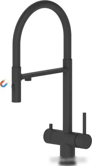 Смеситель Vieir 15019-C предназначен для кухни и устанавливается на раковину или столешницу с одним монтажным отверстием. Он оснащен однорычажным механизмом, что позволяет легко регулировать температуру и поток воды. Цвет черный делает его современным и стильным дополнением кухни. Встроенный кран для питьевой воды обеспечивает удобство использования. Керамический картридж гарантирует долговечность и плавное управление. Поворотный и выдвижной излив позволяют удобно мыть посуду и заполнять крупные емкости. Такой смеситель — хорошее решение для повседневного использования на кухне.