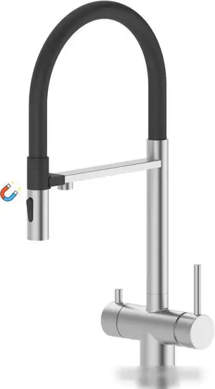 Смеситель Vieir 15019 предназначен для кухни и устанавливается на раковину или столешницу с одним монтажным отверстием. Он имеет однорычажный механизм, что облегчает регулировку температуры и потока воды. В конструкции встроен кран для подачи питьевой воды, а керамический картридж обеспечивает долгий срок службы и плавное управление. Излив поворотный и выдвижной, что удобно при мытье посуды и продуктов. Смеситель выполнен в цвете сатин или черный, он хорошо сочетается с разными стилями кухни. Он не имеет каскадного потока, возвратной пружины и не подключается к посудомоечной машине. Благодаря простоте конструкции, его установка и использование максимально удобны.