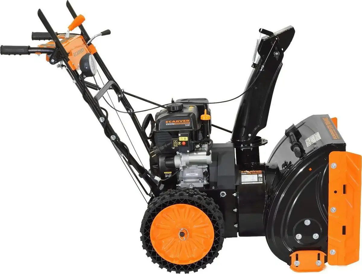 Снегоуборщик Carver STG 7056WEL — это мощное и надежное устройство для уборки снега. Он оснащен бензиновым двигателем WEIMA W210FSE мощностью 7 л.с. и объемом 212 см³, что обеспечивает эффективную работу при любой погоде. Благодаря колесному движителю и шести скоростям, он легко передвигается и управляется. Ширина захвата составляет 66 см, а высота — 53 см, что ускоряет очистку больших площадей. Двухступенчатая система отбрасывания и управляемый с панели дефлектор позволяют точно настраивать направление снега. Дальность выброса достигает 15 метров, что помогает быстро убрать снег из нужных мест. Есть электропуск с электростартером и фары для работы в темное время суток. Вес устройства — 78,2 кг, его удобно транспортировать и хранить. Снегоуборщик идеально подходит для сезонной уборки снега в любой ситуации.