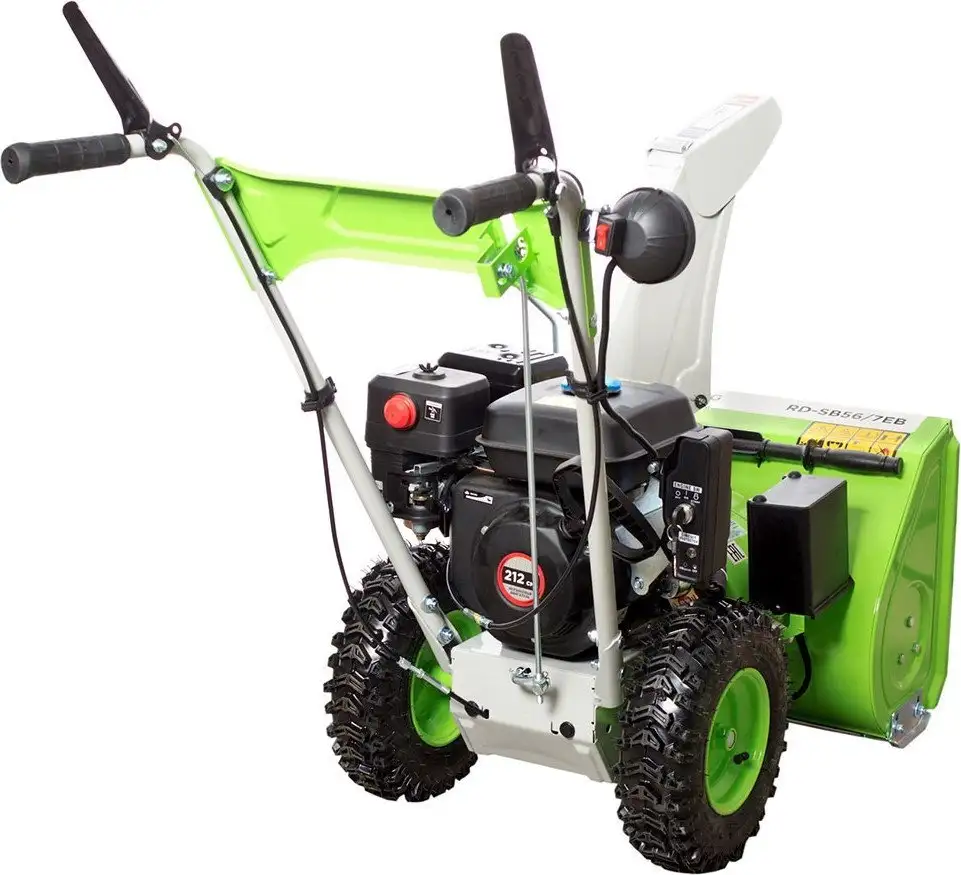 Снегоуборщик RedVerg RD-SB56/7EB — это надежное устройство для очистки снега, которое легко справляется с зимними осадками. Он оснащен бензиновым двигателем Zongshen 170F(E) мощностью 7 л.с., который быстро запускается и обеспечивает стабильную работу. Благодаря колесному движителю он легко перемещается по снегу, а ширина захвата 56 см позволяет быстро очищать большие площади. Высота выброса снега достигает 43.6 см, а дальность выброса — до 15 м, что помогает избегать беспорядка. Эта модель имеет самоходную конструкцию и двухступенчатую систему отбрасывания, управляемую с панели оператора, что облегчает работу. Пять скоростей движения позволяют выбрать подходящий режим, увеличивая эффективность работы. Фары обеспечивают хорошую видимость при низкой освещенности. Устройство весит 65 кг и имеет диаметр колес 33 см, что обеспечивает хорошую маневренность и стабильность. Этот снегоуборщик идеально подходит для зимней эксплуатации в домашних условиях.