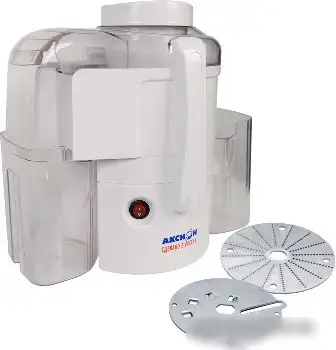 Соковыжималка Аксион СЦ 32.02 выполнена из прочного пластика и имеет белый цвет. Ее конструкция основана на центробежной системе, которая быстро и эффективно выжимает сок из фруктов и овощей. Мощность устройства составляет 250 Вт, что обеспечивает хорошую производительность. В комплект входят два диска-терки, позволяющих настраивать виды продуктов. Для удобства в соковыжималке есть контейнер для сока объемом 0,5 литра и контейнер для мякоти емкостью 1,8 литра. Устройство имеет диаметр отверстия для загрузки 49 мм, что облегчает вставку крупных кусочков. Благодаря блокировке и отсутствию импульсного режима, работа модели безопасна и надежна.