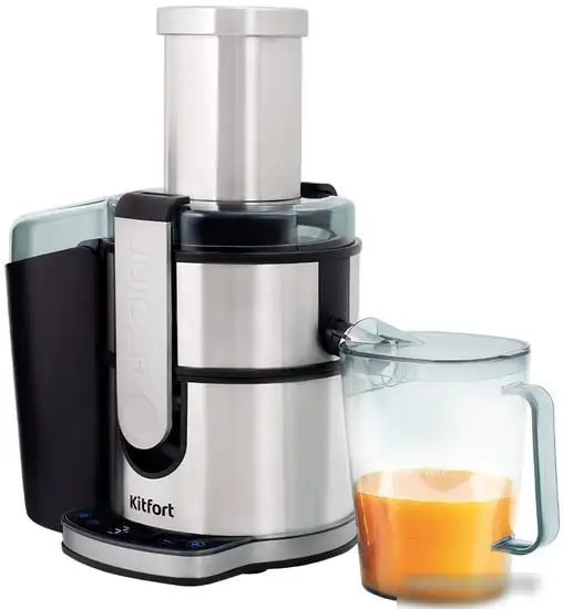 Соковыжималка Kitfort KT-1120 — это удобная и надежная модель для домашнего использования. Она работает на мощной конструкции с потребляемой мощностью 800 Вт, что позволяет быстро добывать сок из фруктов и овощей. Модель имеет регулировку скорости из пяти режимов, что помогает выбрать оптимальный режим для разных продуктов. Корпус сделан из прочного металла в нержавеющей сталью и черным цветом, что придает ей современный внешний вид. В соковыжималке есть емкость для сока на 1,1 литра и контейнер для мякоти, что облегчает процесс приготовления. Она оснащена блокировкой для безопасности и импульсным режимом для более эффективной работы. Также удобна в использовании благодаря своим размерам: шириной 38,8 см, глубиной 25 см и высотой 39,2 см, а вес составляет всего 3,6 кг.
