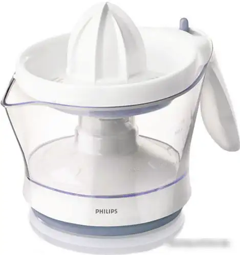 Эта цитрусовая соковыжималка Philips HR2744/40 легко справляется с отжатием сока из апельсинов, лимонов и других цитрусовых. Она имеет мощность 25 Вт, что позволяет быстро получать свежий сок. Корпус выполнен из прочного пластика, он легкий и удобный в использовании. В устройстве есть емкость на 0,6 литра для сбора сока. Вы можете регулировать количество мякоти, чтобы получить желаемую консистенцию напитка. Отброс мякоти не предусмотрен, поэтому сок получается чистым и прозрачным. Встроенное место для хранения шнура помогает держать рабочее место аккуратно. Эта модель проста в сборке и чистке, что делает процесс приготовления сока удобным. Благодаря компактному размеру, соковыжималку легко хранить дома или брать с собой в поездки. Она подходит для ежедневного использования и подарит вам свежий, натуральный сок всегда под рукой.