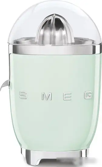Соковыжималка Smeg CJF11PGEU предназначена для быстрого и удобного отжима цитрусовых фруктов. Она имеет компактный размер: ширина и глубина — по 16,6 см, а высота — 28,1 см, что позволяет легко хранить устройство дома. Корпус выполнен из пластика и окрашен в яркий зеленый цвет, что добавляет яркости кухне. Мощность устройства составляет 70 Вт, что обеспечивает эффективный отжим с минимальными усилиями. Вы сможете выбрать оптимальную скорость работы благодаря регулируемому режиму. В конструкции отсутствует импульсный режим, реверс и блокировка, что упрощает эксплуатацию. Для удобства есть место для хранения шнура, что помогает держать рабочее место аккуратным. Вес устройства составляет 2,56 кг, его легко перемещать и использовать по мере необходимости. Эта соковыжималка отлично подойдет для ежедневной подготовки свежего сока.