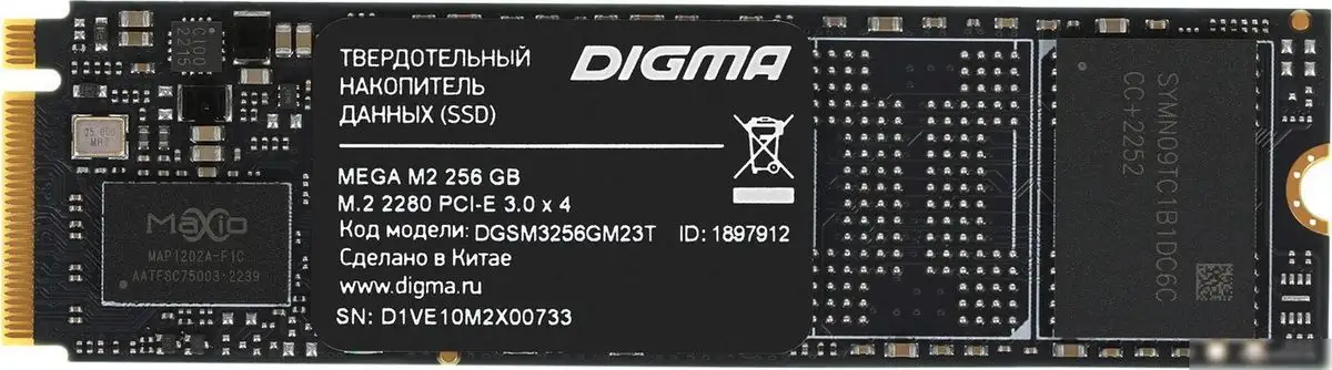 SSD Digma Mega M2 256GB DGSM3256GM23T — это быстрый накопитель формата M.2 с интерфейсом PCI Express 3.0 x4, который обеспечивает высокую скорость передачи данных. Он использует надежные микросхемы Flash 3D TLC NAND и контроллер Maxio MAP1202 для стабильной работы и долговечности. Объем 256 ГБ подходит для установки операционной системы и основных программ. Он не имеет аппаратного шифрования, но отличается высокой надежностью с ресурсом записи до 188 ТБ и временем наработки на отказ 1,5 миллиона часов. Толщина всего 2,25 мм делает его очень компактным и легким в установке. SSD не требует охлаждения или подсветки и совместим с большинством устройств, кроме PS5. Благодаря этим характеристикам, он быстро запускает систему и ускоряет выполнение задач.