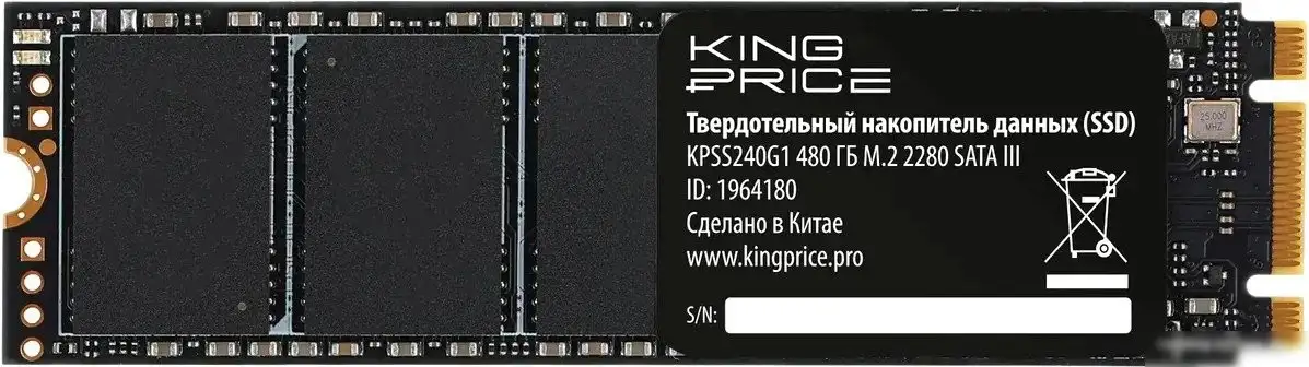 SSD Kingprice KPSS480G1 обладает объёмом 480 ГБ и форм-фактором M.2, что позволяет легко установить его в совместимый ноутбук или компьютер. Он подключается через интерфейс SATA 3.0 и обеспечивает скорость чтения до 540 МБайт/с и записи до 500 МБайт/с, что ускоряет загрузку систем и работу с файлами. Устройство не имеет DRAM-буфера и аппаратного шифрования, что снижает стоимость, но не влияет на базовую безопасность данных. Благодаря ресурсу записи 160 ТБ, оно подходит для ежедневного использования и нечастых обновлений данных. Мощный ресурс MTBF в 1 500 000 часов гарантирует долгий срок службы SSD. Размеры устройства — 80 мм длиной и 2,1 мм толщиной, оно подходит для тонких ноутбуков и ПК. В комплект входит SSD в розничной упаковке RTL. Отсутствие охлаждения и подсветки делает устройство максимально компактным и простым. Это решение идеально подходит для тех, кто хочет увеличить скорость работы своего компьютера или ноутбука.