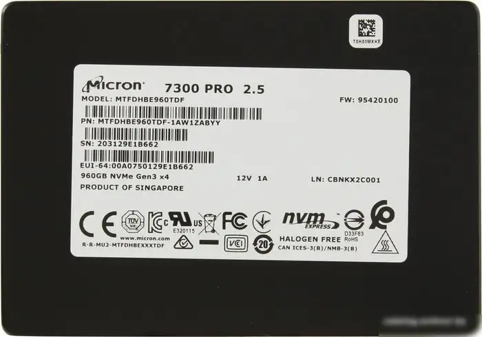 SSD Micron 7300 Pro объемом 1.92 ТБ идеально подойдет для хранения больших объемов данных. Он имеет форм-фактор 2.5" и интерфейс PCI Express 3.0 x4, что обеспечивает быстрый обмен данными. Используются надёжные 3D TLC NAND микросхемы, которые позволяют записывать до 4200 ТБ данных. Скорость чтения достигает 3000 МБ/с, а запись — 1500 МБ/с, что ускоряет работу с файлами. SSD оборудован аппаратным шифрованием для защиты информации. Его ресурс записи составляет 4200 ТБ, а срок службы — около 2 миллионов часов. Устройство работает без системы охлаждения и подсветки, что позволяет использовать его в различных системах. Размер 7 мм подходит для большинства ноутбуков и ПК. Он не включает адаптер для 3.5-дюймовых слотов. Этот накопитель сочетает высокую производительность и долговечность для профессиональных задач и игр.