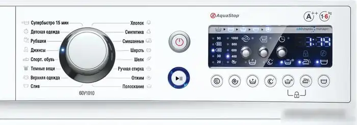 автоматическая стиральная машина, загрузка до 6 кг, отжим 1000 об/мин, глубина 40.7 см (с люком 48.5 см), энергопотребление A++, защита от протечек, 16 программ