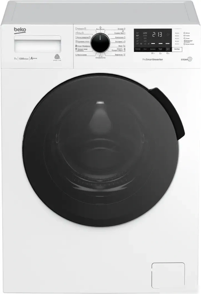 Стиральная машина BEKO WSPE7612W — это отдельностоящее устройство, выполненное в белом цвете, с загрузкой до 7 кг и скоростью отжима 1200 об/мин. Она обладает классом энергопотребления A+++ и классом стирки A, что помогает экономить электроэнергию и воду. Машина управляется электронным способом и имеет цифровую индикацию, которая показывает текущий режим и ошибки. В ней есть 15 программ, включая деликатные, спортивные и специальные процедуры для удаления пятен, паром и бережной обработки вещей. Благодаря функции обработки паром, она глубоко очищает и облегчает глажку. Машина оснащена функциями самостоятельной очистки и блокировки от детей для безопасности. За счёт инверторной технологии достигается тихая и долговечная работа устройства. Её габариты позволяют легко разместить в любой ванной или в комнате, не занимает много места. Этот аппарат помогает быстро и эффективно стирать разнообразный текстиль, экономя при этом энергию и воду.