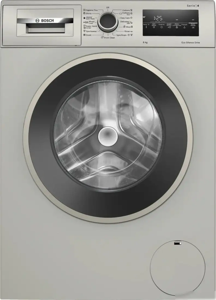 Стиральная машина Bosch Serie 4 WAN2821XME — отдельностоящее устройство с загрузкой до 8 кг и скоростью отжима 1400 об/мин. Она работает тихо благодаря технологии EcoSilence Drive и обладает высокой энергоэффективностью класса A. В этой модели есть 15 программ стирки, включая деликатную, быструю и специальные функции для белого и цветного белья. Быстрое стирки занимает всего 15 минут, а есть режим для бережного ухода за вещами. Машина предусматривает дозагрузку, есть автоматическая блокировка от детей и сигнал о завершении стирки. Управление осуществляется с помощью цифровой панели, есть индикация ошибок и таймер для отложения старта. В конструкции отсутствует прямой привод и режим обработки паром, но она эффективно справляется с большинством домашних задач. Размеры — около 60 см в ширину, 85 см в высоту, и она весит около 70 кг. Это надежная и простая в использовании модель для ежедневного использования.