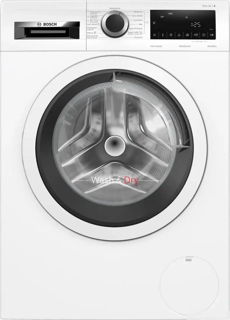 Стирально-сушильная машина Bosch Serie 4 WNA144VEPL — это отдельностоящая модель, которая помогает стирать и сушить одежду одновременно. Она рассчитана на загрузку до 9 кг для стирки и до 5 кг для сушки, что подходит для семьи. Машина работает тихо, создавая уровень шума всего 70 дБ при отжиме, и быстро справляется с задачами благодаря 14 программам, включая деликатную стирку, спортивные и быструю за 15 минут. Энергоэффективность у модели высокая, а инверторный двигатель обеспечивает долгий срок службы и экономию энергии. Удобно управлять машиной с помощью электронного дисплея, есть таймер отсрочки запуска и блокировка от детей. Объем барабана 60 литров позволяет стирать и сушить большое количество вещей за один цикл.