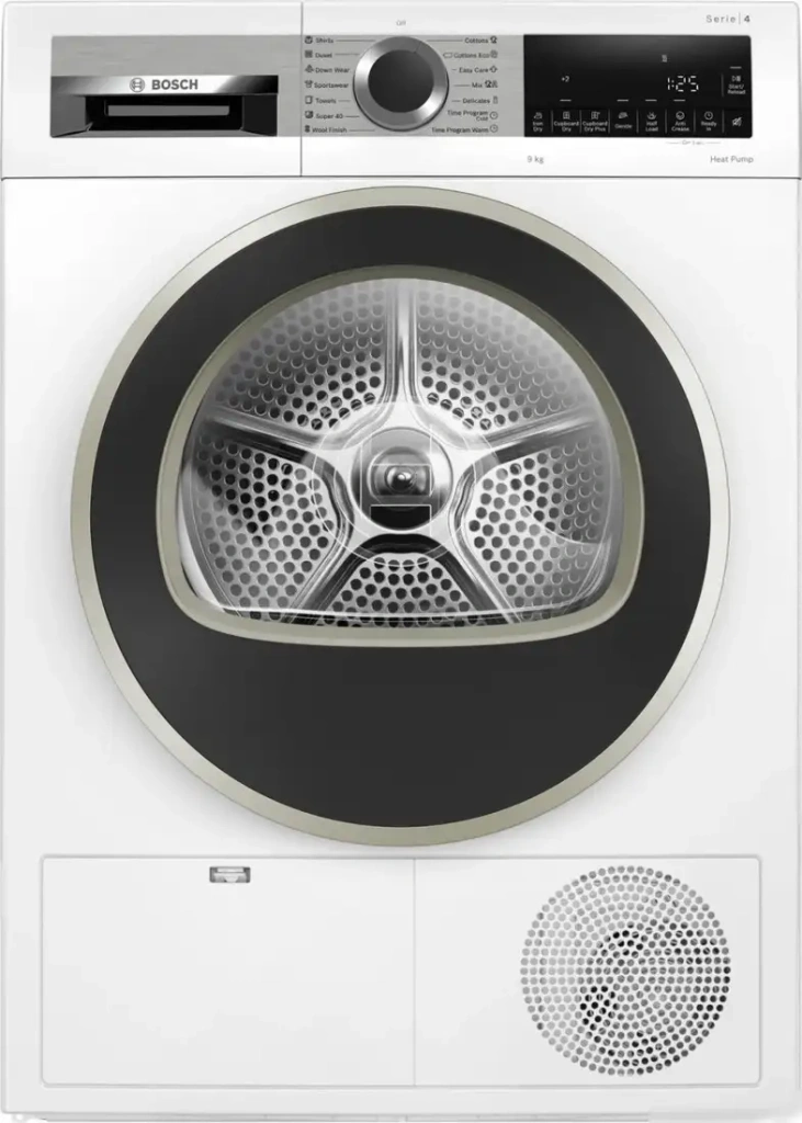 Сушильная машина Bosch Serie 4 WQG1420AME — это отдельностоящее устройство, которое удобно устанавливать в любой комнате. Она рассчитана на загрузку до 9 кг одежды, что подходит для семьи. Машина использует метод конденсационной сушки с тепловым насосом, что помогает экономить энергию и беречь одежду. В ней есть 14 программ для различных видов тканей, включая деликатные и спортивные вещи. Максимальный уровень шума при сушке составляет 64 дБ, что не мешает отдыху. Устройство управляется электронной панелью с цифровой индикацией и звуковым сигналом. Там есть функция контроля сушки по влажности и таймер отложенного старта для удобства использования. Для защиты от случайных запусков предусмотрена блокировка от детей, а для гладкости — программа легкой глажки. Пользователи оценят энергоэффективность класса А++, а также компактные размеры, которые легко разместить в квартире.