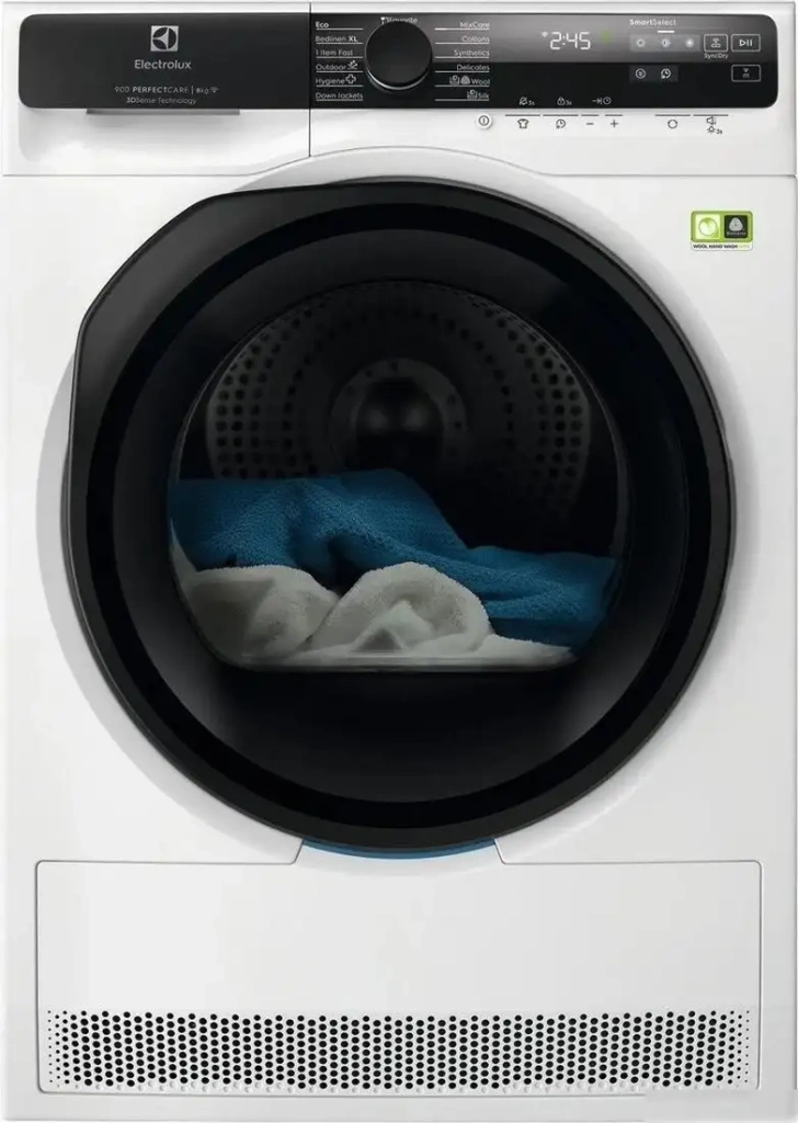 Сушильная машина Electrolux EW9D587KCE помогает быстро и эффективно высушить до 8 кг одежды благодаря технологии конденсации с тепловым насосом. Она работает на отдельностоящей основе и управляется электронным дисплеем, что делает использование простым и удобным. Машина оснащена 12 программами, в том числе функцией контроля влажности, которая автоматически останавливает сушку в нужный момент. Инверторный мотор обеспечивает тихую и энергоэффективную работу. Внутри находится подсветка барабана и индикаторы ошибок для быстрого обнаружения проблем. Есть таймер отсрочки старта и звуковой сигнал при завершении. Защиту детей обеспечивает специальная блокировка, а цифровая индикация показывает все параметры работы. Помимо этого, конструкция включает прозрачный люк с правой петлёй, а стильный белый дизайн гармонично впишется в любую стилистику интерьера.