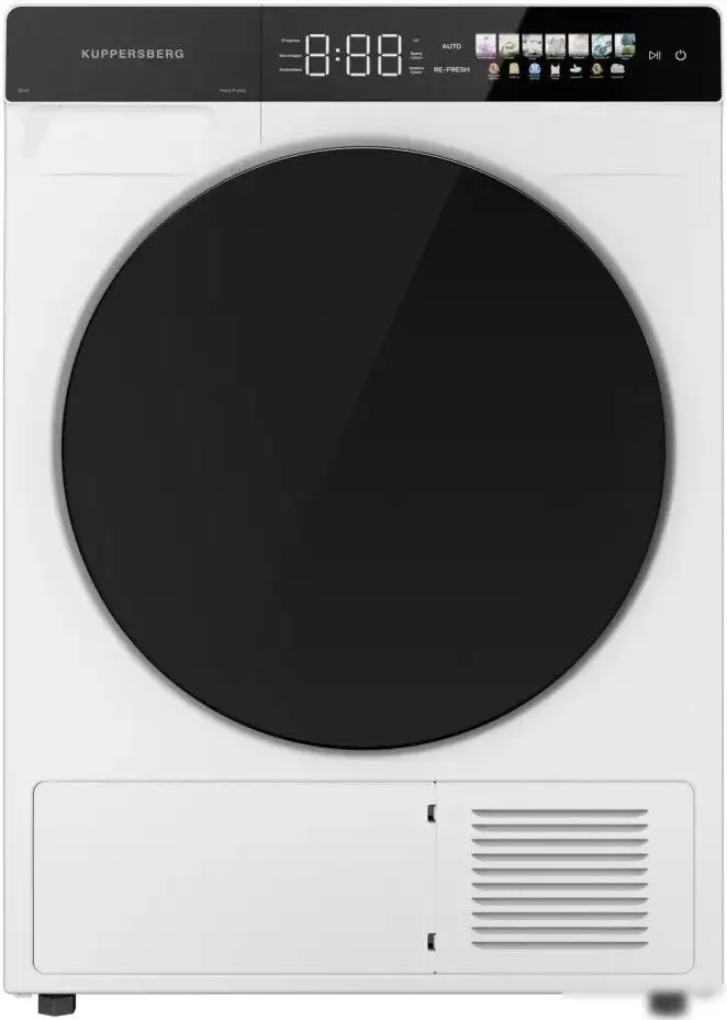 Сушильная машина KUPPERSBERG DM 590 W предназначена для эффективной сушки до 10 кг вещей с помощью конденсационного метода и теплового насоса. Она имеет отдельностоящее исполнение и управляется сенсорным ЖК-экраном, что облегчает использование. Особенностью является ультрафиолетовая обработка и тепловой насос Heat Pump, которые помогают дезинфицировать и сэкономить энергию. Машина включает 16 программ, среди которых быстрые, для шерсти, детской одежды и антиаллергии, что позволяет выбрать оптимальный режим. Объем барабана 118 литров обеспечивает удобство для семейного использования, а внутренняя подсветка делает загрузку проще. Встроенная блокировка от детей и индикация ошибок обеспечивают безопасную работу. Машина работает тихо — уровень шума при сушке составляет 69 дБ. Также устройство обладает функциями контроля влажности и таймером отложенного старта. Это делает сушильную машину KUPPERSBERG DM 590 W надежным помощником для домашнего ухода за одеждой.