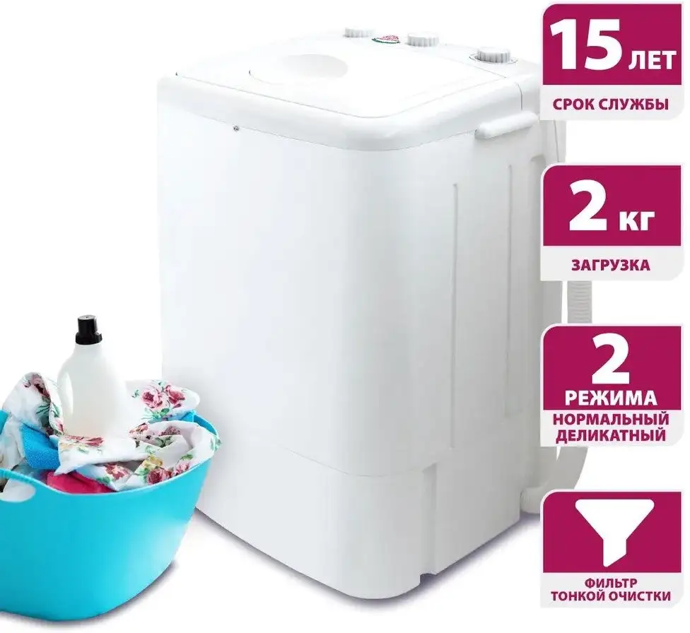 отдельностоящая, активаторная стиральная машина, загрузка до 2 кг, глубина 35 см, энергопотребление A