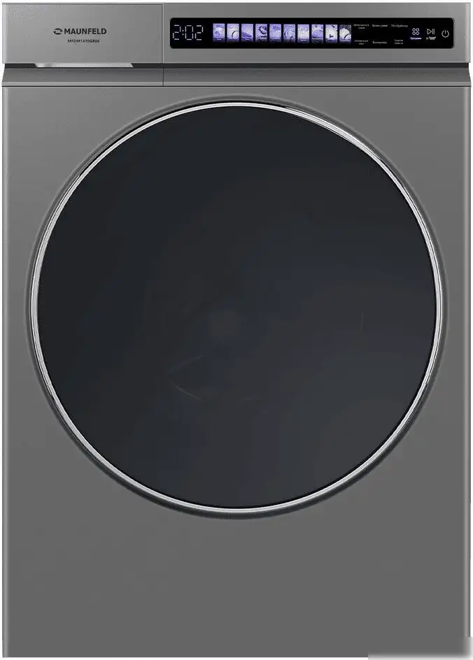 Сушильная машина MAUNFELD MFDM1410GR06 — это удобное устройство для сушки до 10 кг одежды. Она работает по принципу конденсации с тепловым насосом, что помогает экономить энергию и заботится о окружающей среде. Машина выполнена в сером цвете и легко управляется сенсорным ЖК-экраном, который показывает всю важную информацию. Устройство предлагает 14 программ, включая экспресс, шерсть, детскую одежду и гипоаллергенную сушку, чтобы удобно высушить любые вещи. Особое преимущество — контроль влажности, который автоматически регулирует ступень сушки. Машина работает тихо, уровень шума составляет всего 68 дБ, и оснащена функцией подсветки барабана. Для безопасности есть блокировка от детей и звуковой сигнал, оповещающий о завершении работы. Размеры подходят для любой квартиры: ширина — 59.5 см, высота — 88.5 см. Она сочетает в себе эффективность и простоту использования, делая сушку одежды быстрой и удобной.