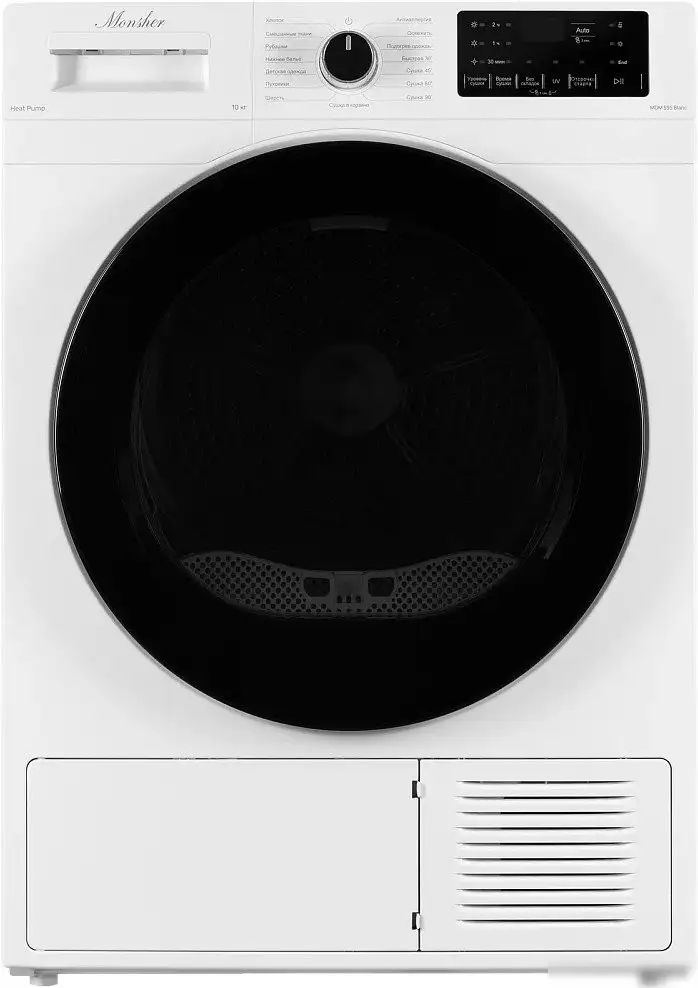 Сушильная машина Monsher MDM 595 Blanc помогает быстро и эффективно сушить одежду. Она работает по методу конденсации с тепловым насосом, что делает её более энергоэкономичной. Машина вмещает до 10 кг белья за один цикл и имеет 15 программ для разных типов ткани и целей. Управление осуществляется через электронный дисплей, который показывает состояние устройства и ошибки. В ней есть функции быстрой сушки за 30, 45 и 60 минут, а также режим антиаллергии и безопасность — блокировка от детей. Благодаря режиму контроля влажности, одежда сохраняет оптимальный уровень влажности. Машина отлично справляется с пуховиками, детской одеждой и деликатными тканями. Она работает тихо, уровень шума при сушке — 69 дБ, что не создаёт лишнего шума в доме. Размеры позволяют разместить её в стандартной кухне или ванной комнате.