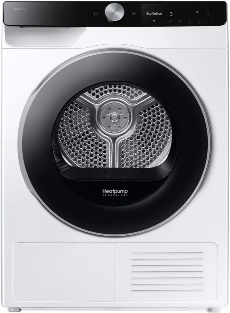 Сушильная машина Samsung DV90DG6845LKU4 отлично подходит для быстрой и бережной сушки одежды. Она умеет сушить до 9 кг ткани за один цикл, что удобно для семьи. Использует метод конденсационной сушки с тепловым насосом, что делает её энергоэффективной. В ней есть программы для всех типов тканей: хлопок, синтетика, деликатные ткани и джинсы. Машина оснащена функцией быстрой сушки за 35 минут и подготовит одежду с минимальными складками. Благодаря технологии AI Control она самостоятельно оптимизирует режимы сушки, что облегчает использование. Вы можете управлять ей через приложение SmartThings и менять направление открывания дверцы. Также предусмотрена автоматическая сушка по влажности и защита от ошибок. Эта модель обладает современной электроникой и инверторной технологией, что обеспечивает экономичный расход электроэнергии. В управлении используется цифровая панель с индикацией и таймером отложенного старта.