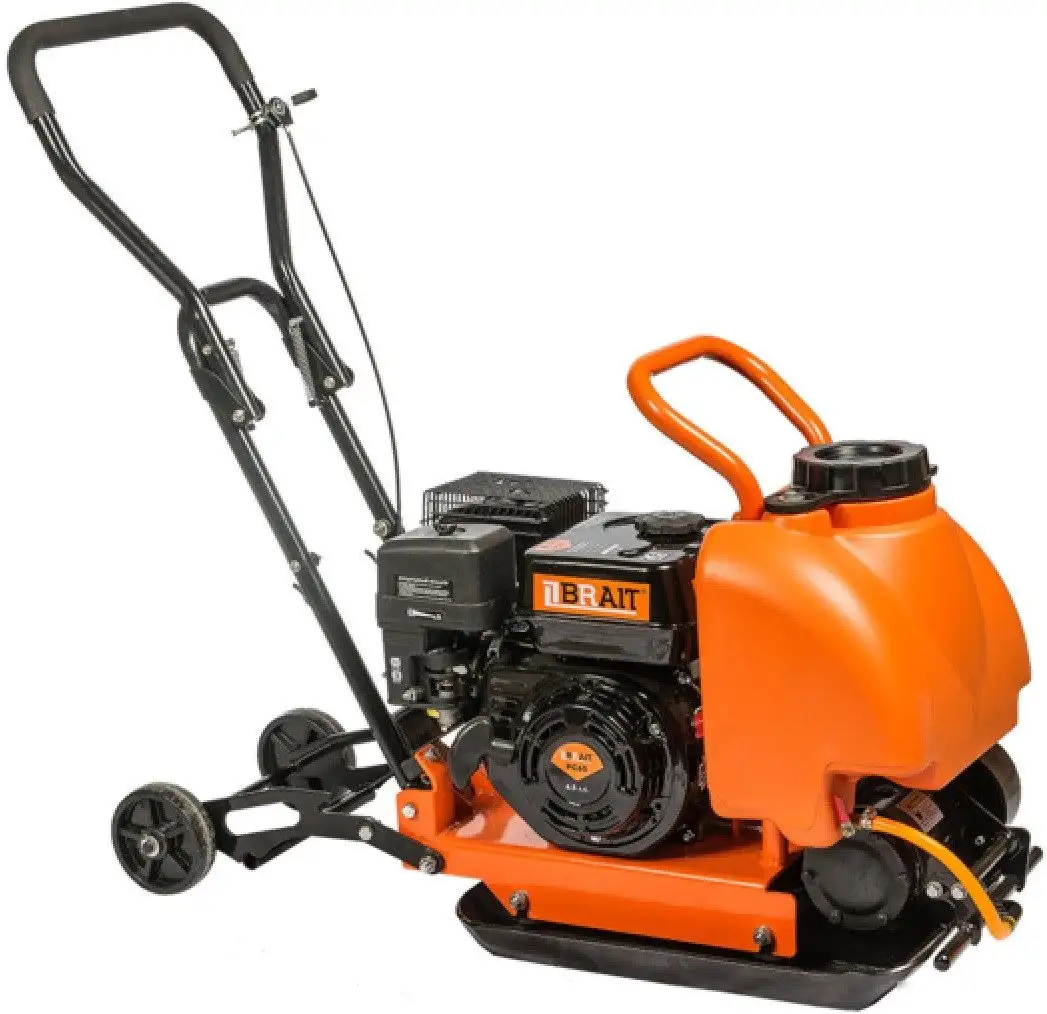 Виброплита Brait PC-60 — это мощный инструмент для уплотнения грунта и асфальта. У неё бензиновый двигатель BR202P мощностью 6,5 л.с., который обеспечивает хорошую производительность. Вес устройства составляет 59 кг, что помогает эффективно работать на строительной площадке. Центробежная сила 11 кН позволяет быстро и качественно уплотнять материал. Скорость движения достигает 15 м/мин, что делает работу быстрее. Виброплита оборудована колесами для удобства транспортировки и баком для воды для использования во влажных условиях. Ее размеры — 51×37 см — позволяют работать в узких местах.
