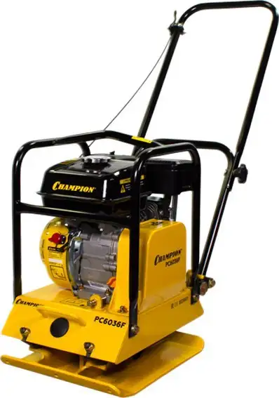 Виброплита Champion PC6036F оснащена бензиновым двигателем G200HK с мощностью 4 800 Вт (6,5 л.с.), что обеспечивает эффективное уплотнение грунта. Ее вес составляет 58 кг, а глубина уплотнения достигает 25 см, идеально подходя для строительных работ. Устройство вибрирует с частотой 95 Гц и обладает центробежной силой 11 кН, что позволяет быстро выравнивать поверхность. Длина плиты — 49,5 см, ширина — 32 см, вместительный топливный бак позволяет работать долго без дозаправки. В комплект входит рукоятка, ключ для свечи, а также крепежи, что упрощает сборку и эксплуатацию. Благодаря отсутствию системы орошения, работа сосредоточена непосредственно на уплотнении грунта. Также устройство оснащено колесами для удобства перемещения по строительной площадке. Для безопасной работы и долговечности рекомендуется следовать рекомендациям из руководства по эксплуатации.