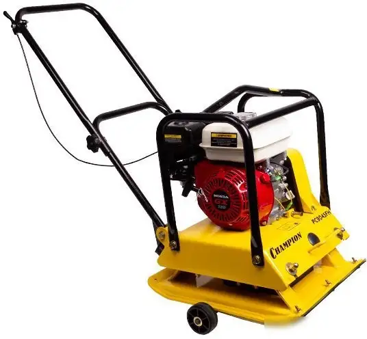 Виброплита Champion PC9045FH идеально подходит для уплотнения грунта и асфальта на строительных объектах. Она оснащена мощным бензиновым двигателем мощностью 5,5 л.с., который обеспечивает стабильную работу и хорошую производительность. Масса устройства составляет 90 кг, что помогает ему уверенно уплотнять материалы до глубины 30 см. Центробежная сила 15 кН позволяет эффективно уплотнять даже тяжелые слои. Производительность достигает 660 м² в час, что ускоряет выполнение работ. Ширина плиты — 45 см, длина — 50 см, что удобно для обработки различных участков. В комплект входит транспортировочные колеса и резиновая накладка для защиты поверхности. Устройство не имеет системы орошения и бака для воды, что делает его простым в использовании. Виброплита легко транспортируется и управляется благодаря комплекту ключей и инструкции.