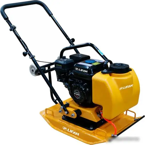 Виброплита Lifan PVB100 — это мощное устройство для уплотнения земли и асфальта. Она оснащена бензиновым двигателем LIFAN 168F-2, который развивает 6,5 л.с. и обеспечивает производительность до 650 м² в час. Благодаря центробежной силе 22 kN и глубине уплотнения до 30 см, плита эффективно справляется с разными задачами. Ее масса составляет 110 кг, что помогает сохранять стабильность при работе. Устройство не имеет реверса, поэтому его используют в условиях, где важна надежность и простота. В комплект входят транспортировочные колеса и бак для воды на 14 л, что облегчает перемещение и работу на влажных поверхностях. Также есть силиконовый коврик для защиты поверхности и система орошения для улучшения уплотнения. Модель аккуратно разработана для профессионального применения и долгой службы.