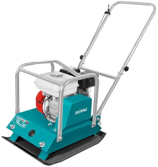 Виброплита Total TP7100-2 работает на бензиновом двигателе мощностью 4 800 Вт или 6,5 л.с., который обеспечивает надежную работу. Она весит 90 кг и создает центробежную силу 15 кН для эффективного уплотнения. Плита позволяет уплотнять грунт на глубине до 30 см и двигается со скоростью 2,7 м/мин, что помогает обрабатывать большие участки быстро. Максимальная скорость вращения двигателя составляет 4 200 об/мин, что обеспечивает стабильную работу. Благодаря высокой производительности — 660 м²/ч — плита подходит для строительных и ремонтных работ. Ее длина 56 см, ширина — 44 см, без колес, что делает ее удобной в использовании. Эта модель отлично справляется с задачами уплотнения при работе на стройках и в саду.