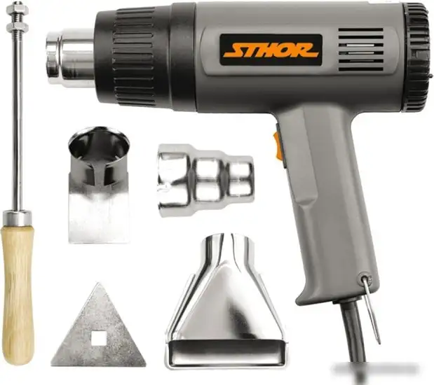 Промышленный фен Sthor 79328 мощностью 1500 Вт быстро нагревается и позволяет выбрать два температурных режима до 495 °С для различных задач. Он оснащён двумя скоростями потока воздуха, что помогает точно контролировать процесс сушки или моделирования. Устройство не имеет дисплея, что упрощает использование и снижает стоимость. В комплект входит сопла разных размеров и скребок с заменными насадками, что делает работу удобнее и разнообразной. Вес всего 0,71 кг, поэтому фен легко держать в руке и использовать длительное время без утомления. Диапазон температур подходит для работы с пластиком, резиной, металлическими поверхностями и другими материалами. Быстрая нагревательная способность и простое управление помогают ускорить рабочий процесс. Надёжная конструкция увеличивает срок службы и комфорт в использовании.