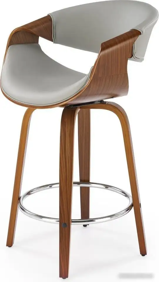 Стул Halmar H123 обладает современным дизайном и удобной конструкцией. Он подходит для использования в баре или домашней кухне, благодаря прочному металлическому каркасу и фанерному основанию. Сиденье покрыто искусственной кожей серого цвета, что делает его стильным и łatко очищаемым. Высота сиденья 63 см обеспечивает комфорт при сидении, а ширина 55 см и глубина 51 см позволяют удобно расположиться. Стул не складывается, поэтому его можно использовать постоянно или перемещать по помещению. Вес составляет 8,3 кг, что облегчает его перенос. Коричневый каркас создает приятный контраст с серым сиденьем, придавая интерьеру современный вид. Он служит долговечно благодаря качественным материалам, сочетая стиль и функциональность.
