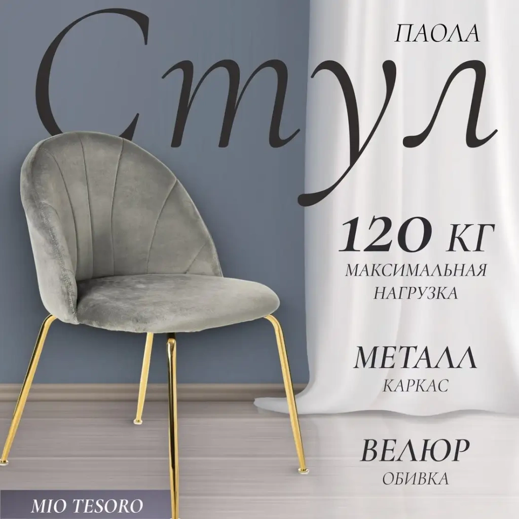 Стул Mio Tesoro Паола DC-125М сочетает комфорт и стиль благодаря мягкому тканевому сиденью из велвета и металлическому каркасу с золотистой отделкой. Он предназначен для обеденных зон и выдерживает нагрузку до 120 кг, обеспечивая качественную поддержку. В него не встроена вращающаяся часть или газовая пружина, что делает его более устойчивым. Размеры позволяют легко разместить его в любой кухне или столовой: ширина 51 см, глубина 55 см, высота 80 см, а высота сиденья — 37 см. Вес всего 4,5 кг делает переноску удобной. Каркас выполнен из металлических материалов, а сиденье — из дерева и ткани, что придаёт изделию долговечность и эстетичный внешний вид. Этот стул легко сочетать с различной мебелью благодаря его нейтральному серому цвету и золотистым деталям. Он хорошо подходит для тех, кто ценит комфорт и стиль в интерьере.