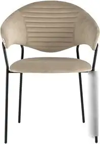 | Информация | Стильный кухонный стул с оригинальной формой спинки, высокой поддержкой и подлокотниками. В качестве обивки используется мягкий велюр — приятный на ощупь износостойкий, гигроскопичный материал. Металлический каркас в черном цвете огибает спинку. |