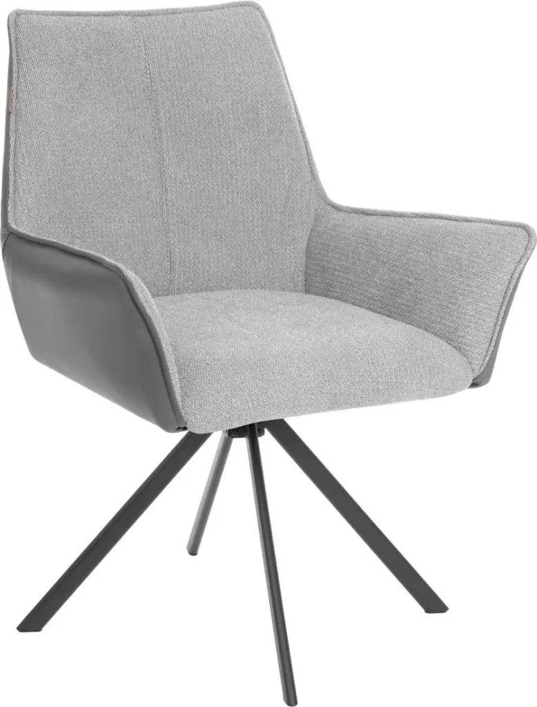 Стул TetChair Мурано с подлокотниками отлично подходит для обеденных зон. Он оснащён сиденьем, выполненным из искусственной кожи и ткани, что делает его удобным и прочным. Каркас из металла обеспечивает стабильность и долговечность. Вращающийся механизм позволяет легко поворачиваться, что повышает комфорт использования. Высота сиденья 40 см подходит для большинства столов. Максимальная нагрузка — 120 кг, что хорошо для ежедневного использования. Стул не складывается, поэтому занимает постоянное место. Он имеет стильный дизайн в светло-сером и графитовом цвете, подойдет к разной мебели и интерьеру. Габариты: ширина 46 см, глубина 64 см, высота 88 см. Весит он всего 11 кг, что облегчает его перемещение. Более того, его прочная конструкция и качественные материалы обеспечивают длительную службу.