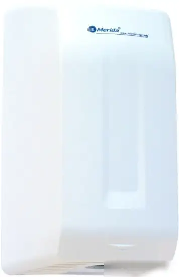 Сушилка для рук Merida Smartflow M44A выполнена в классическом дизайне белого цвета и предназначена для быстрой и эффективной сушки рук. Она имеет мощность 1100 Вт и обеспечивает поток воздуха со скоростью 24 м/с, что позволяет сушить руки всего за 39 секунд. Устройство автоматически включается при приближении рук и выключается после их извлечения, облегчая использование. Максимальная температура воздуха достигает 47 °C, что обеспечивает комфортную сушку без перегрева. Уровень шума составляет 60 дБ, что делает работу более тихой. Благодаря классу защиты IP23, устройство защищено от пыли и брызг воды. Компактные размеры (14.5 × 13.8 × 25.8 см) и вес 1.2 кг делают его легким и удобным для размещения в любом помещении.
